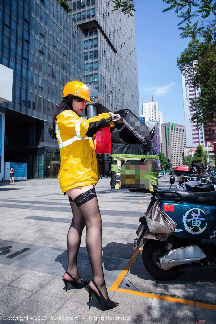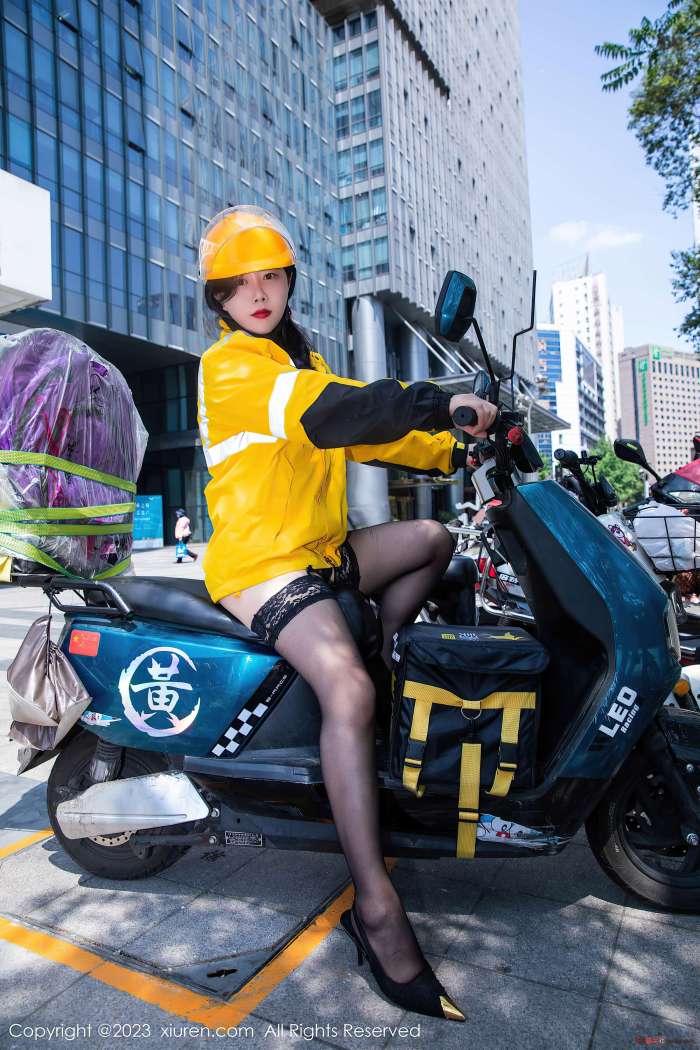 模特@王婉悠Queen 性感写真发布,性感外卖员装扮,性感黑色蕾丝情趣内衣搭配性感魅惑黑丝,婀娜动人极致妩媚,娇媚丰腴有致惹火身段十足动人呈现,高挑身姿于淋漓绽放,全套写真共91P足量放送,希望大家喜欢和多多支持。