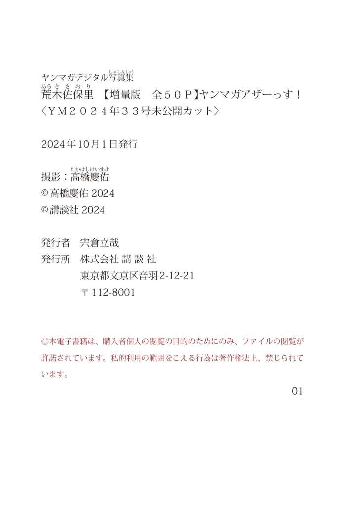 Saori Araki (荒木佐保里) – 【増量版 全50P】ヤンマガアザーっす!<YM2024年33号未公開カット> ヤンマガデジタル写真集 [55P45MB]