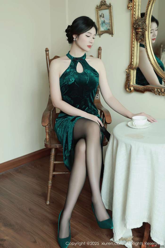 模特@南乔 型感写真发布,型感墨绿色旗袍,型感墨绿色蕾丝内衣搭配型感魅惑嘿丝,白皙皮肤更加娇嫩欲滴。全套写真共72P足量放送,希望大家多多支持!